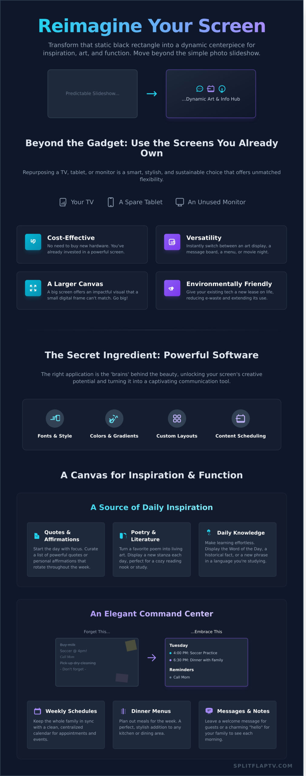 It’s time to move beyond the endless cycle of vacation photos. We’re here to help you reimagine what a screen can be. This guide is packed with stylish and clever ways to transform your display into a dynamic piece of art, a source of daily inspiration, or a charming message board with a dose of retro cool. You’ll discover how to breathe new life and personality into your space, making it more functional and endlessly fascinating-all by using the screens you already own in an elegant new way.